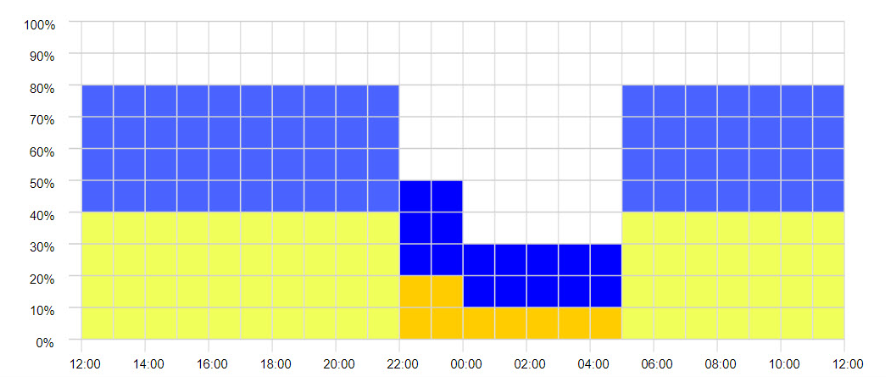 - zwischen 22.00 und 24.00 Uhr das Lichtniveau kurzfristig von 20% auf 50% erhöht.