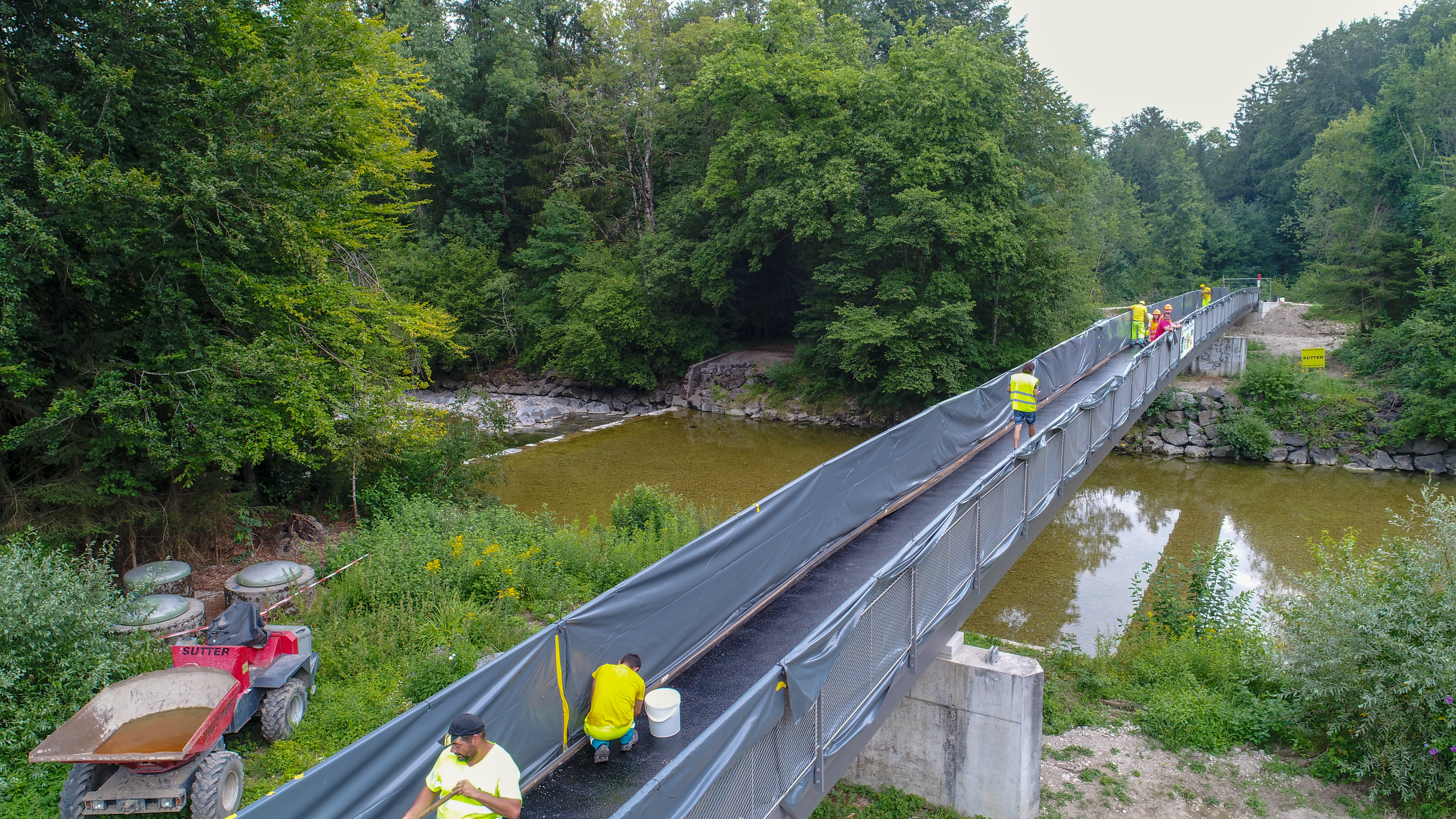 Die Belagsarbeiten am Steg sind nun abgeschlossen. Von jetzt an ist der Steg begehbar. In den nächsten Wochen werden noch diverse Umgebungsarbeiten getätigt.