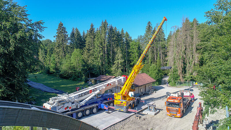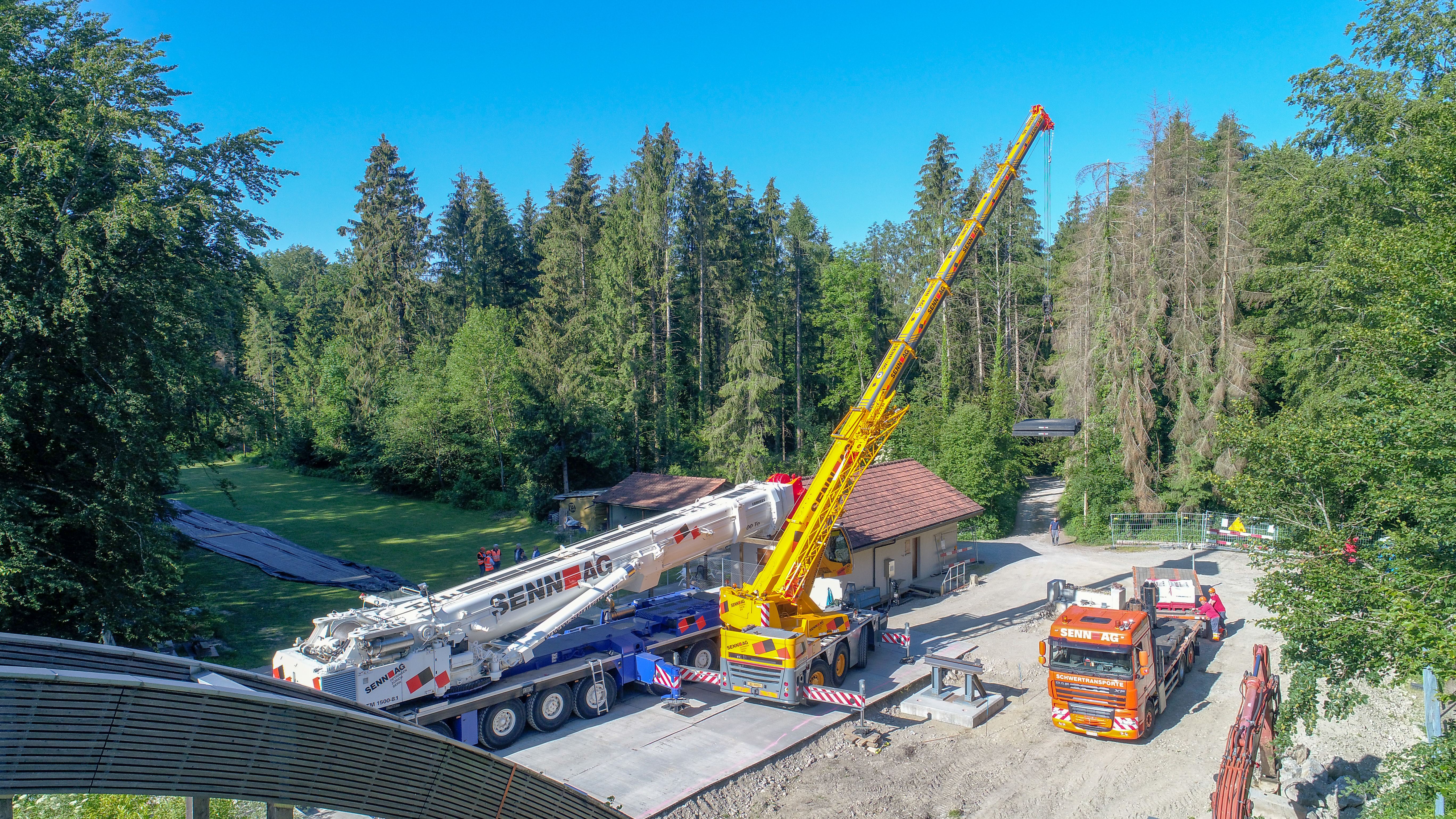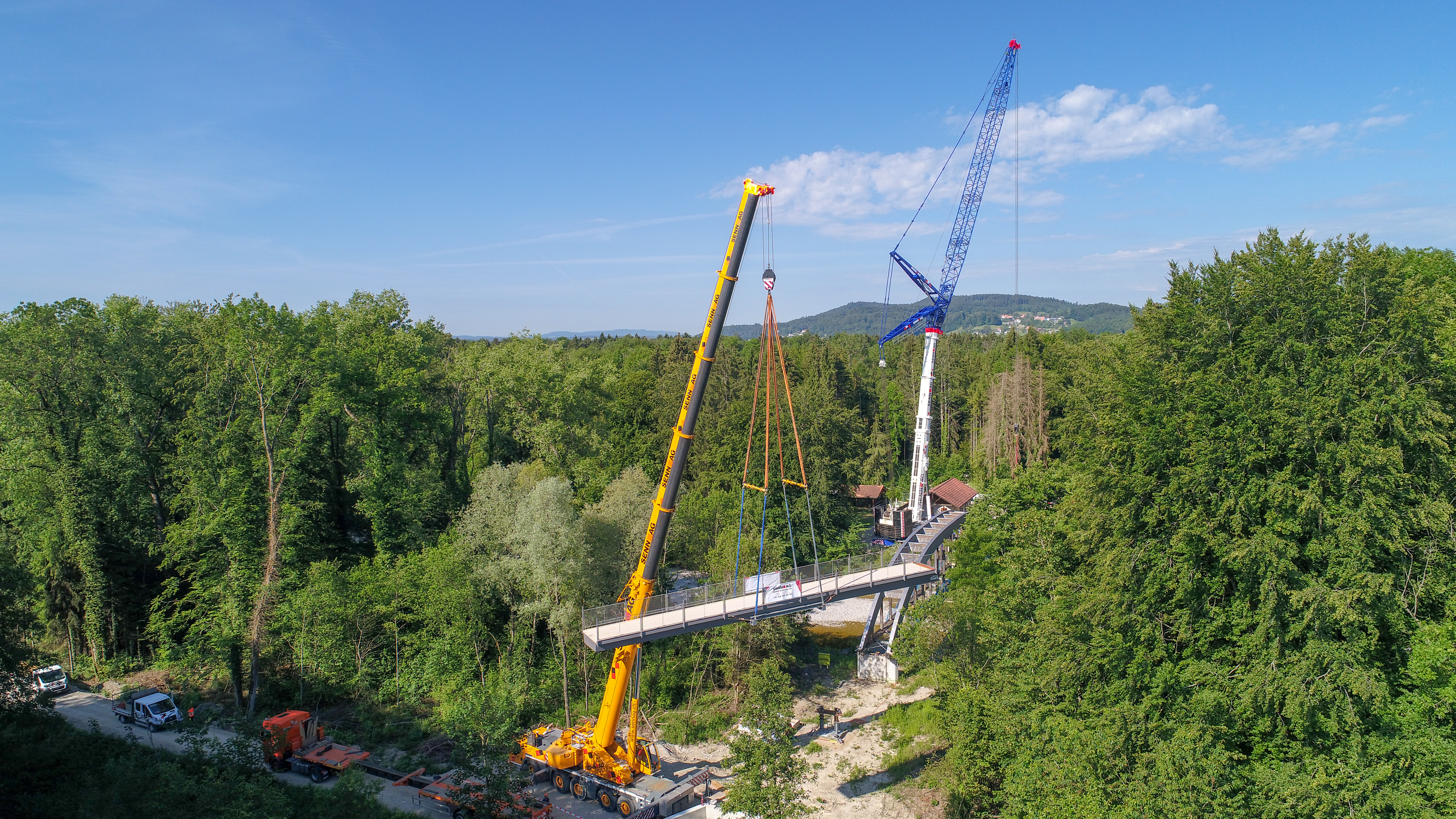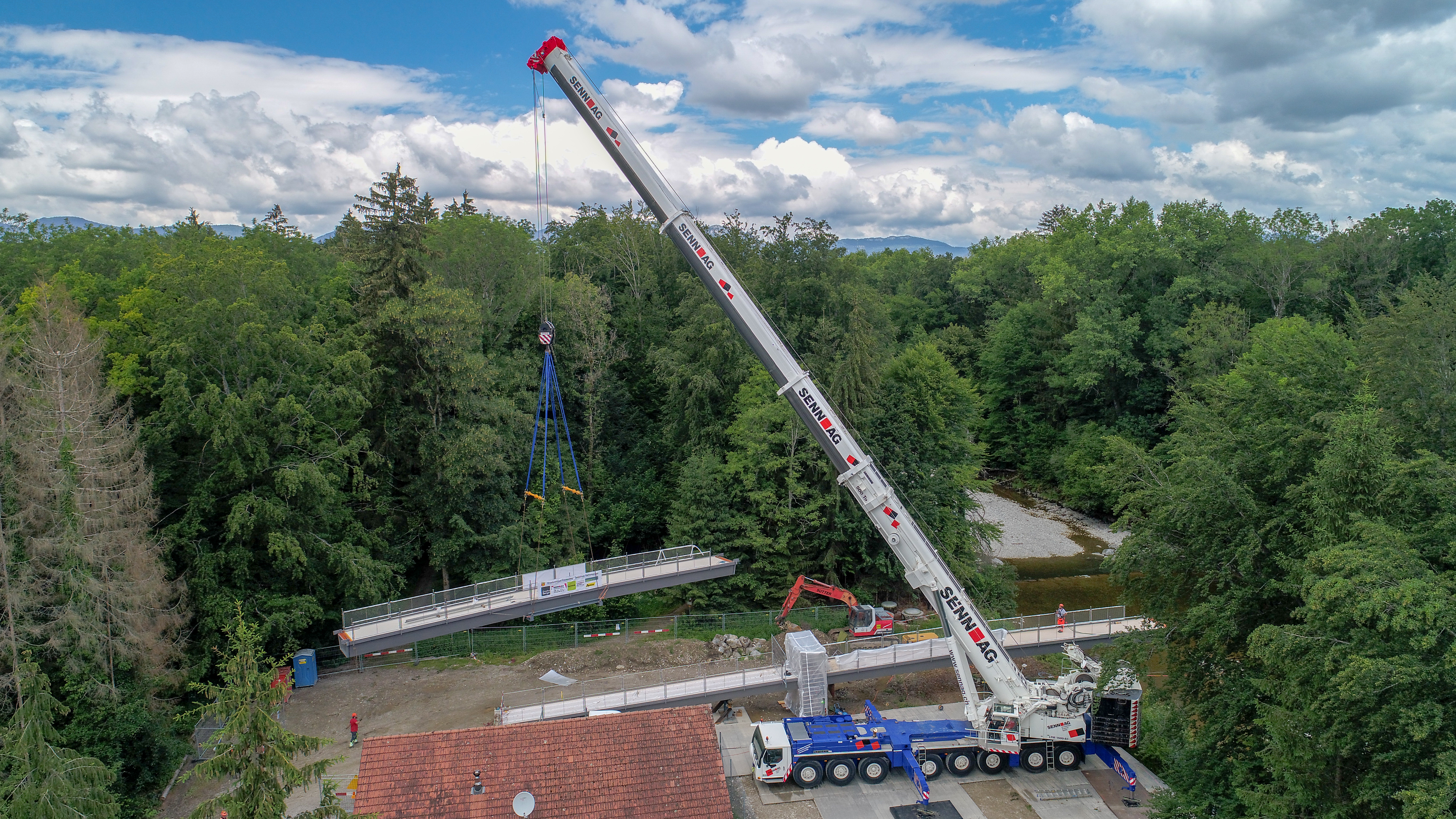 Heute wurde der 500 Tonnen Kran zusammengebaut, welcher in den nächsten Tagen den alten Emmesteg herausheben und anschliesend die neuen Elemente einbauen wird.