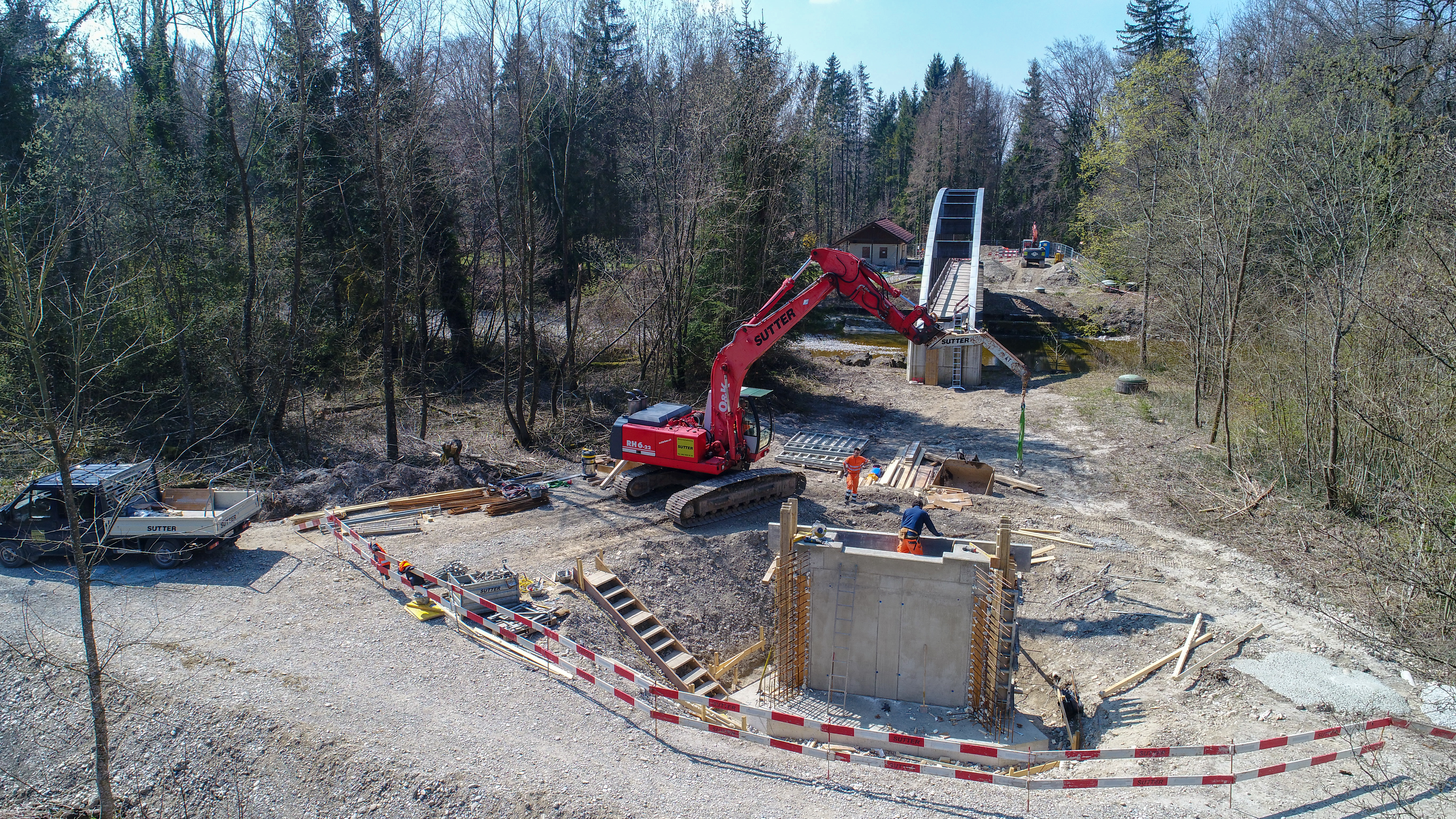Identisch zur Ostseite wurden heute auf der Westseite zwei Brückenelemente eingebaut. Nun fehlt nur noch das letzte Element, welche die Brücke in der Mitte verbinden wird.