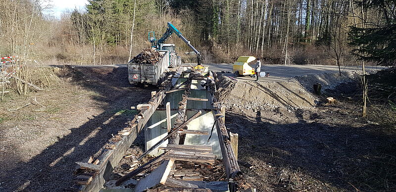 Die ersten Elemente der Brücke wurden entfernt, sowie die Verankerungen aus Betton.