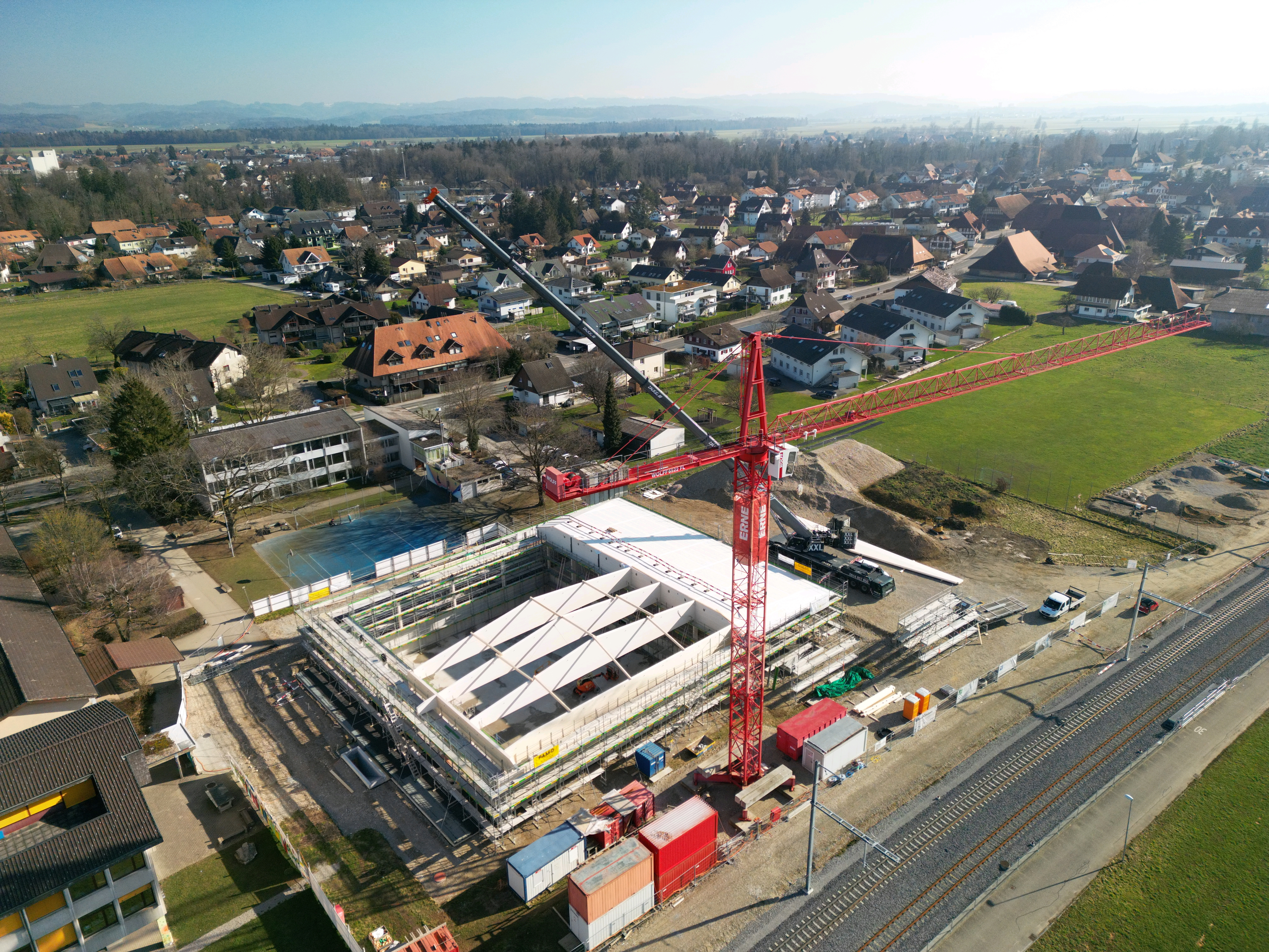 Die Aushubarbeiten starten nach der Bauplatzinstallation in den Frühlingsferien. Bei reibungslosen Bauarbeiten erfolgt die Aufrichtung des Holzbaus Mitte Februar 2023. Die Fertigstellung und Inbetriebnahme des neuen Turnhallenbaus und Sportplatzes ist auf Oktober 2023 geplant. Anschliessend wird die alte Turnhalle bis Ende Jahr 2023 abgebrochen. Die gesamten Bauarbeiten werden mit der Fertigstellung des Allwetterplatzes und der Umgebungsgestaltung voraussichtlich im Mai 2024 abgeschlossen.