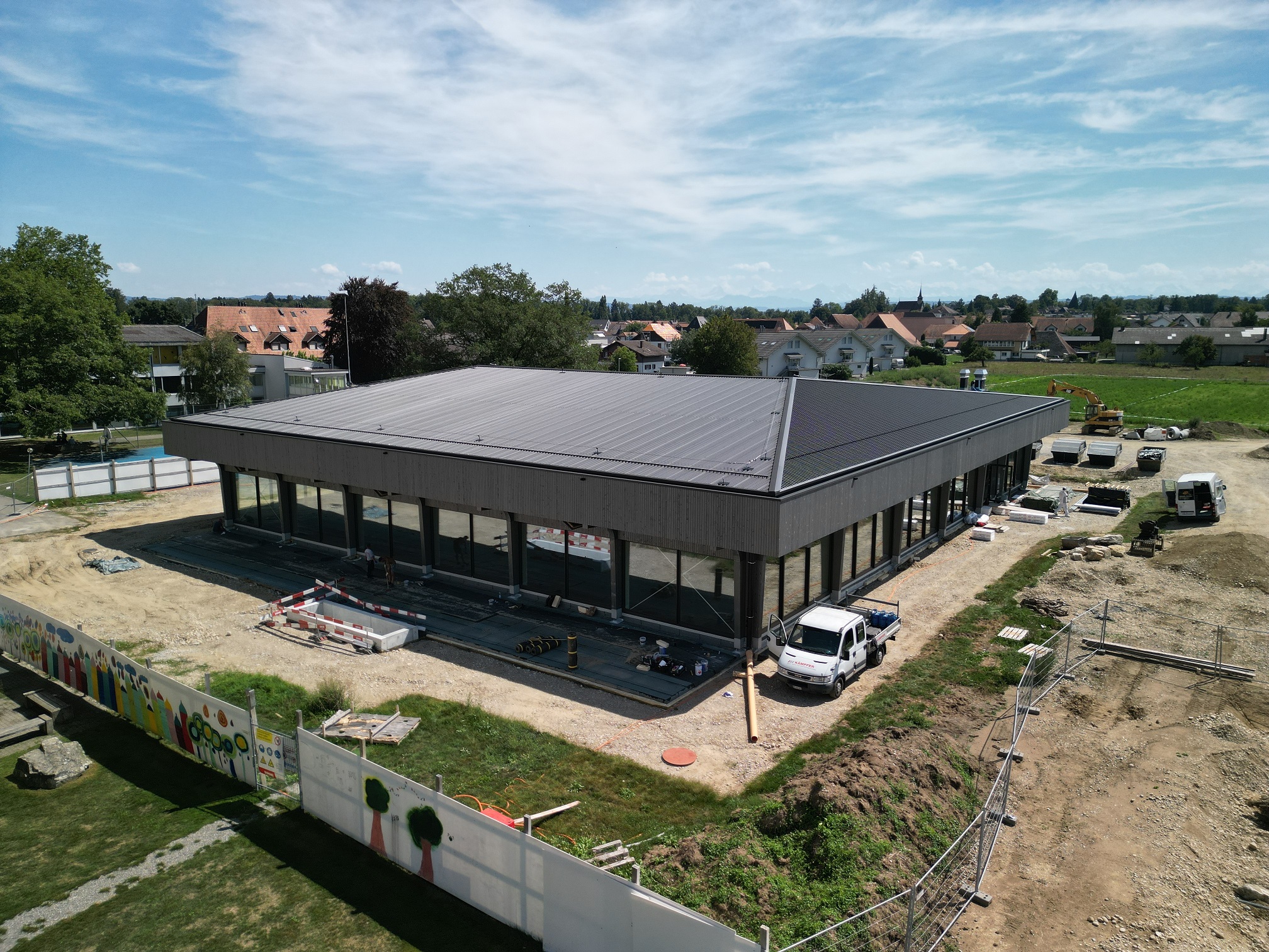 Im März 2021 haben die Stimmberechtigten von Bätterkinden mit einer überwältigenden Mehrheit von 73.5 % Ja-Stimmen dem Neubauprojekt zugestimmt. Mit Hochdruck wurde seitdem an der Umsetzung des Urnenentscheides gearbeitet. Die jahrelange Planung und Umsetzung des Projektes befinden sich in der Endphase. Die Fertigstellung der Umgebungsarbeiten und der Rückbau der alten Turnhalle erfolgen ab März 2024. Nur dank dem unermüdlichen Einsatz der beteiligten Behördenmitglieder, Mitarbeitenden und Firmen verfügt Bätterkinden nun wieder über eine funktionsfähige Turnhalle und eine einladende Tagesschule für die Kleinen. Die neuen Räumlichkeiten wurden den Nutzerinnen und Nutzern Mitte Februar 2024 zum Betrieb übergeben.